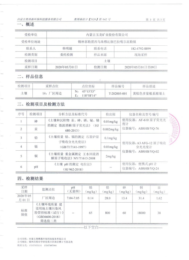 2020年5月份土壤檢測報告