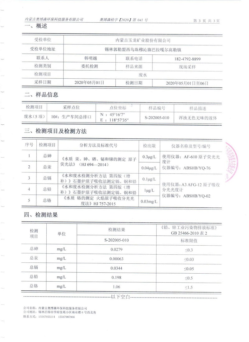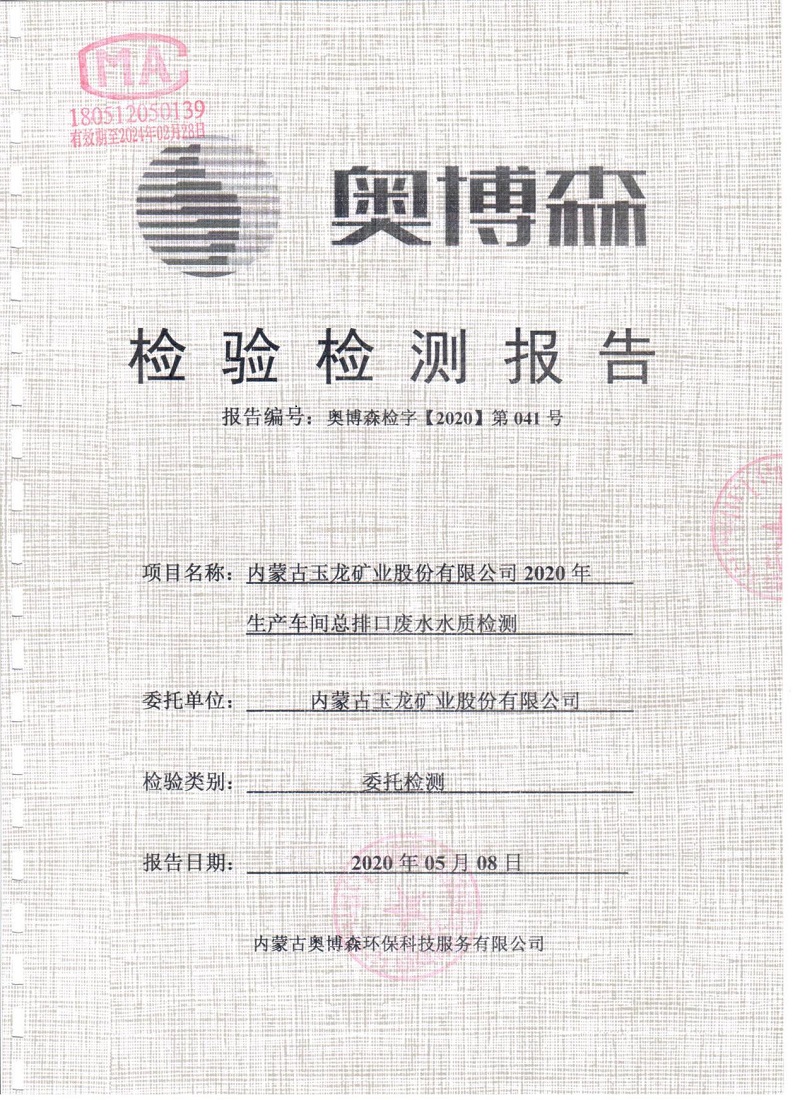 2020年5月份車間總排放口檢測報告